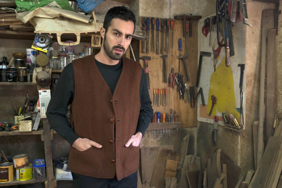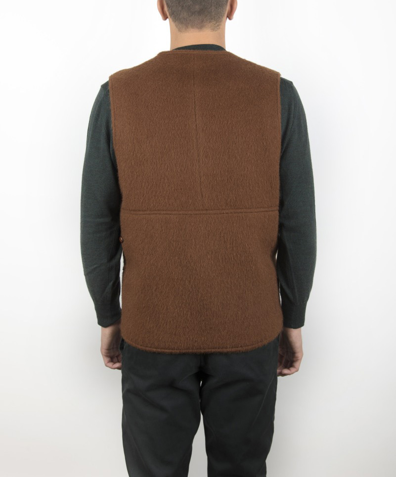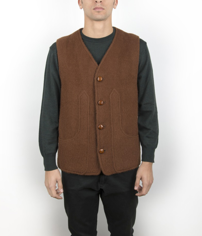 Gilet a 4 bottoni, interamente foderato, che può essere utilizzato anche come giacca senza maniche. Il capo è interamente realizzato in orbace, un tessuto rustico tradizionale composto con lane delle pecore di razza sarda.