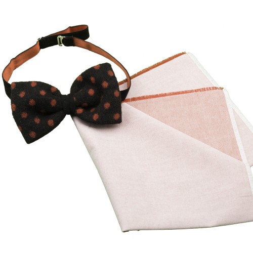 Papillon nero a pois rossi in lana cotta annodato con Pochette
